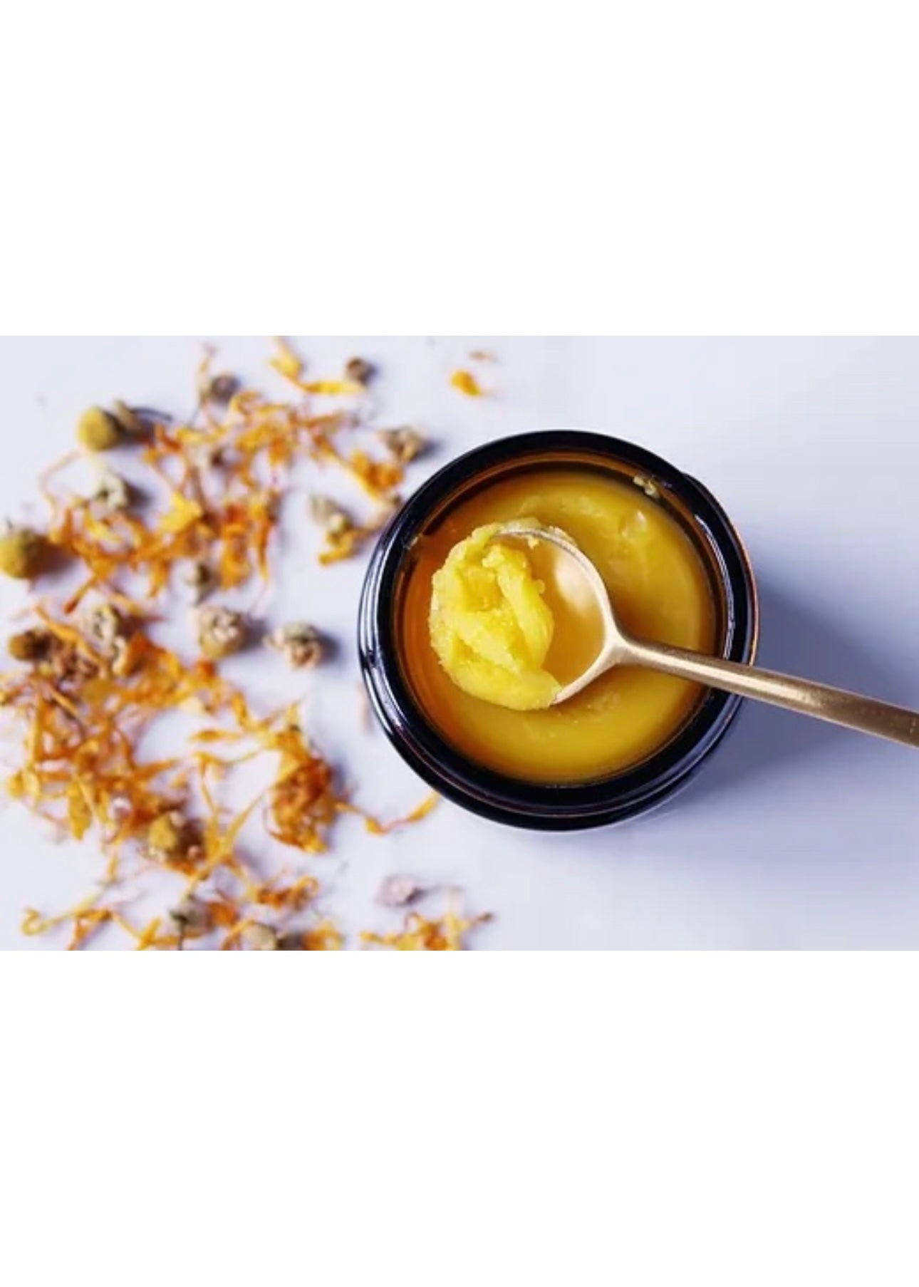100% natural. Preservative and steroid free. This creamy golden balm is a great solution for your painful dry skin, eczema flare ups, and skin irritations. The oils have been infused with organic chamomile and calendula and mixed with pure beeswax, raw honey, colloidal oatmeal and turmeric.