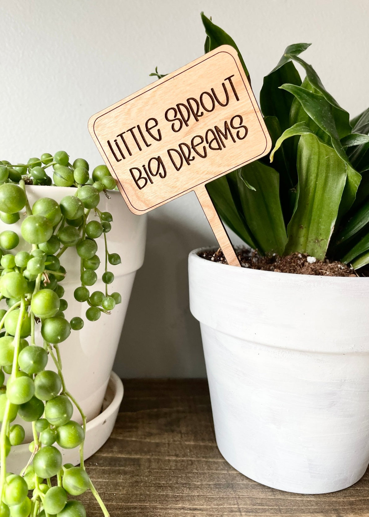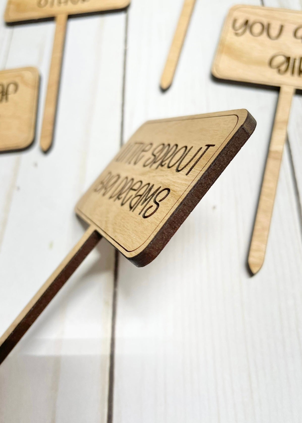 Laser cut and fully engraved lettering no stickers! Maybe these will inspire you to water the plants!